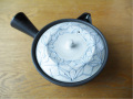大きめの急須のフタには、シルバーブルーの美しい絵柄、
