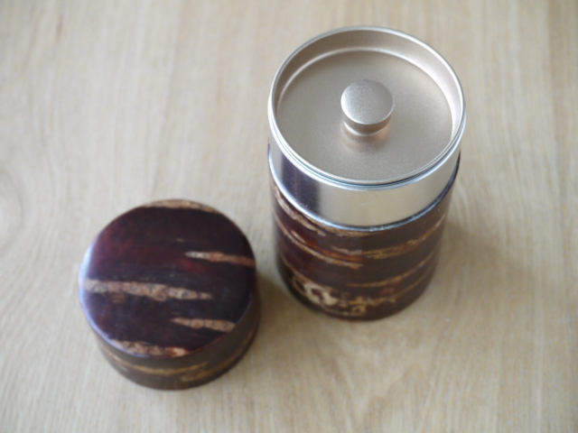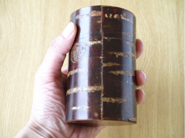 桜皮を使用した茶筒、約100gの茶葉が保存できます。