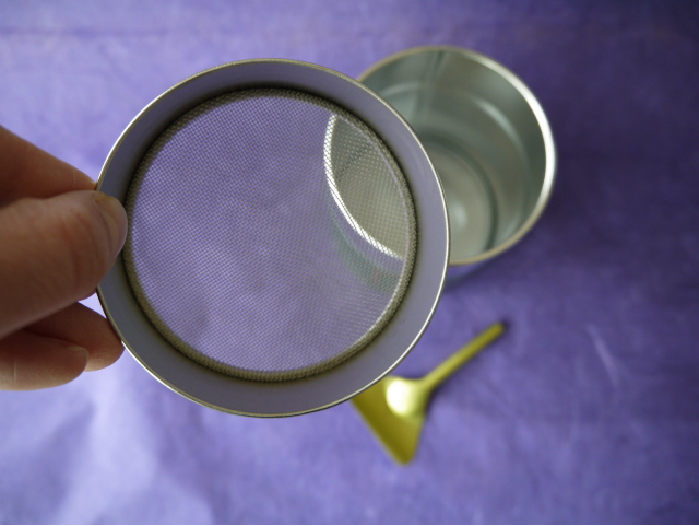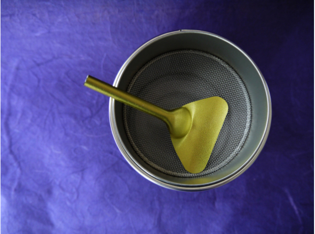 2.付属のヘラを使い、網の目に抹茶を通します。